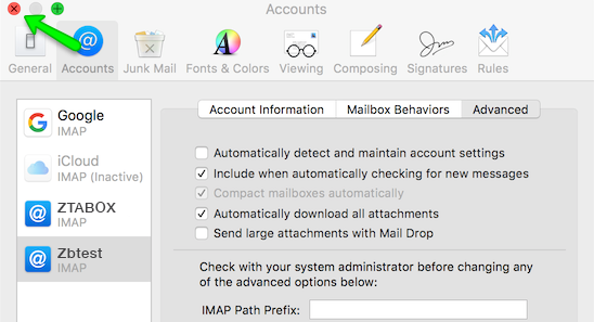 NOTE: once your settings are correct, click on red circle on the top left of preferences window:
