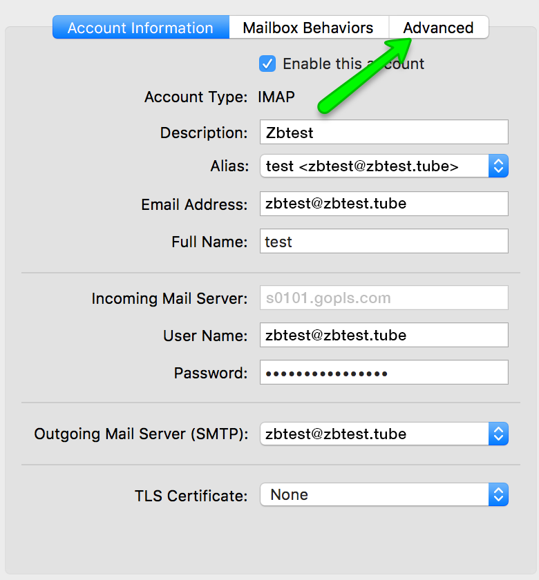 There are two possible options for incoming mail, and this article covers just one of them: IMAP. IMAP protocol will allow syncing emails in various folders between a number of devices. POP will download emails from Inbox folder to this device only. IMAP is recommended. We will use test email account zbtest@zbtest.tube.