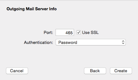 8. In Outgoing Mail Server window, fill out the details as follows: