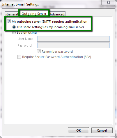 Require logon using Secure Password Authentication (SPA): should be unchecked