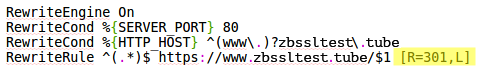This block enables rewriting capabilities, verifies that the initial request does not already have https://, and rewrites the entire requested URL, replacing http:// with https:// (e.g., http://domain.com/subfolder/index.php will be replaced with https://domain.com/subfolder/index.php).