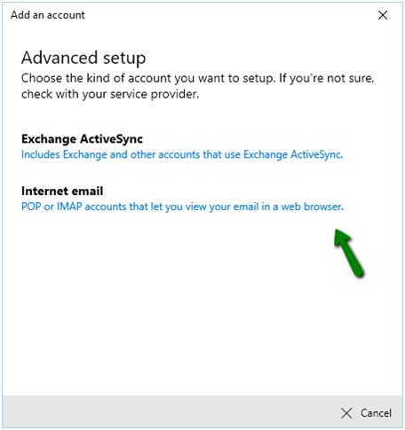 Account name: the name that you'll see in the left navigation pane of Mail for Windows 10, as well as in the Manage Accounts navigation pane (you can choose any name you want).