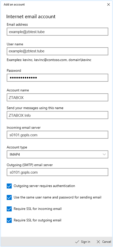 Throughout the guide, we will reference a test email account: example@zbtest.tube.