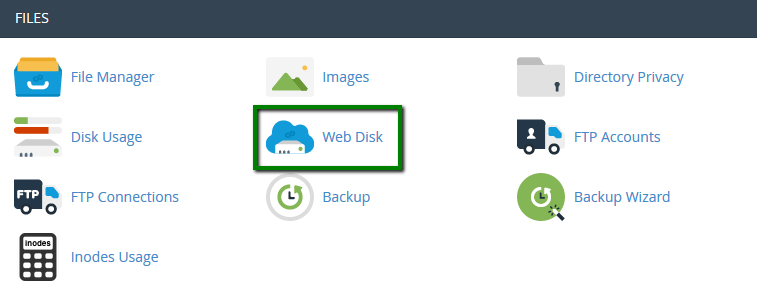 1. Log into your cPanel, navigate to Files section and click Web Disk:
