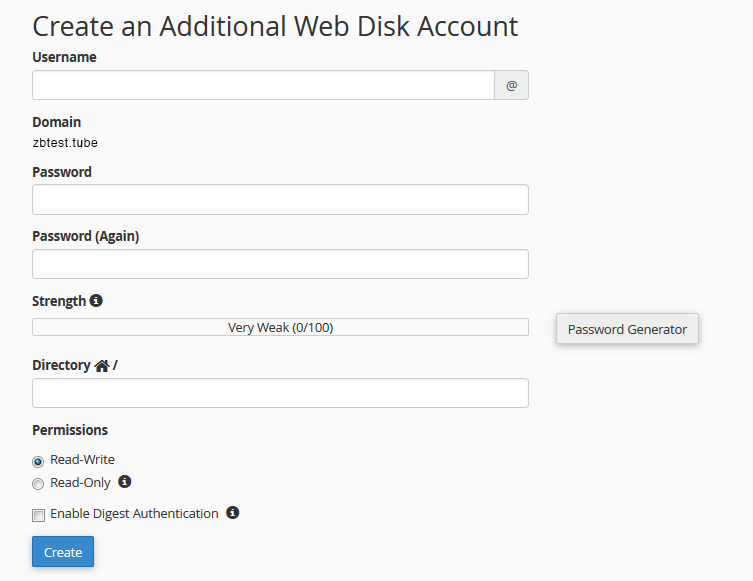 If you wish to create a Web Disk account for a specific directory, you can do it in the Create an Additional Web Disk Account section: