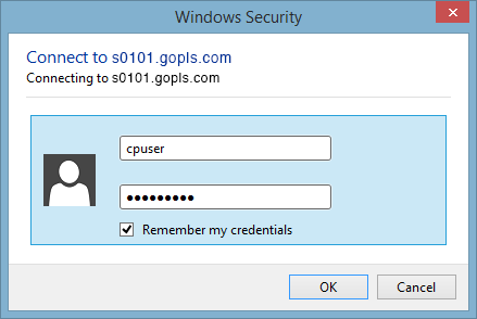 - insert your cPanel username and cPanel password into the corresponding fields and click OK. Do not forget to check the Remember my credentials option.