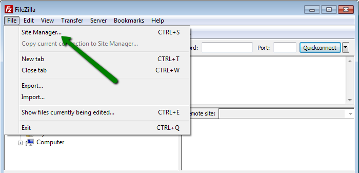 Once you've downloaded and installed FileZilla, launch the program. There are two possible ways to connect - using Site Manager or Quickconnect option.