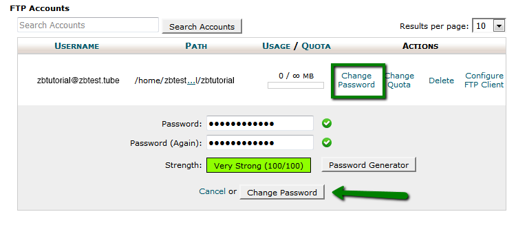 - Password: enter a strong and secure password in this field for your FTP account. You can use Password Generator for this option.