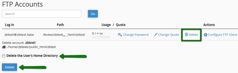 - Delete the User's Home Directory: remove the FTP account and all of the files that the FTP account's home directory contains