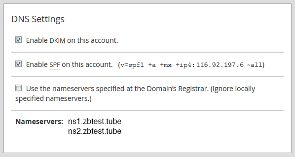 In this box you can enable DKIM and SPF records used for email authentication and define the nameservers - either the ones specified on your domain's registrar side or the ones set in Basic cPanel & WHM setup menu.