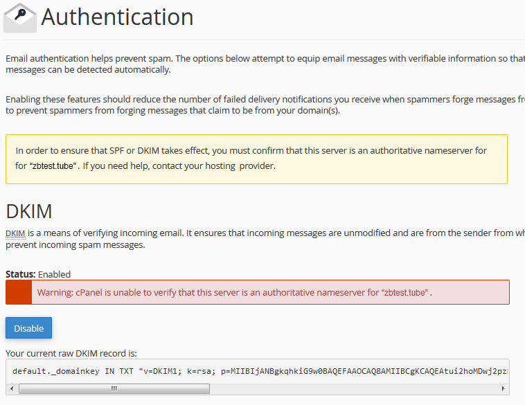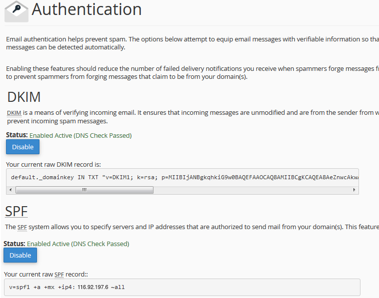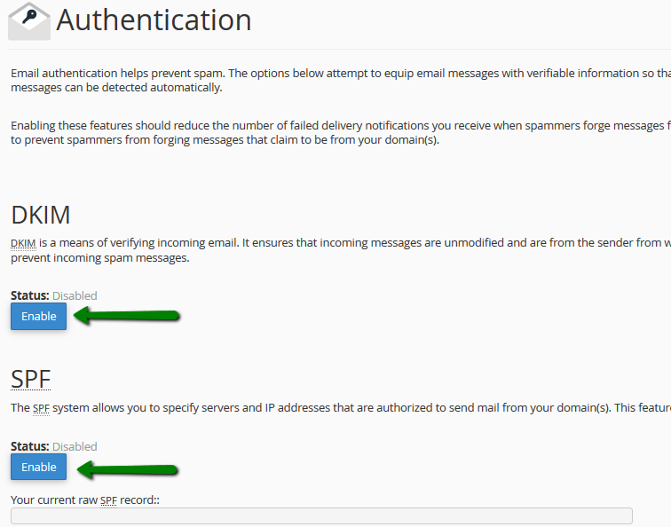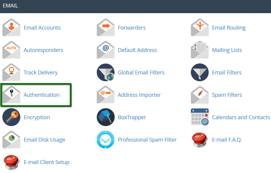 Email Authentication is an effective set of anti-spoofing and anti-spamming tools available in cPanel: