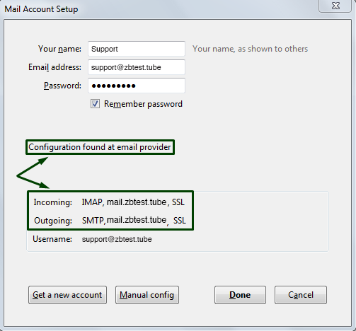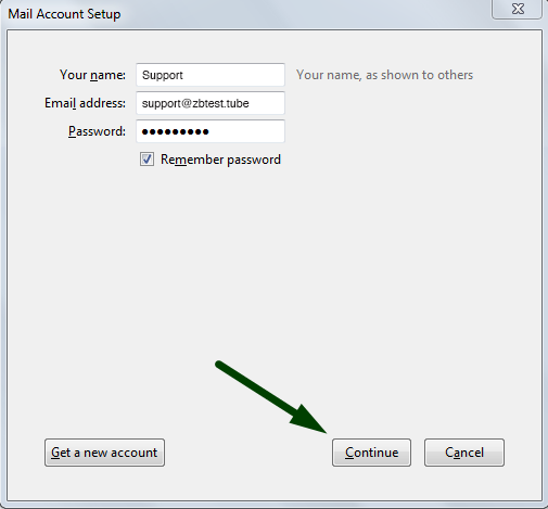 We will use a test email account support@zbtest.tube in this tutorial. For automatic email account set up you need to do the following: