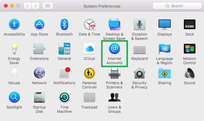 1. Click Launchpad and then System Preferences > Internet Accounts: