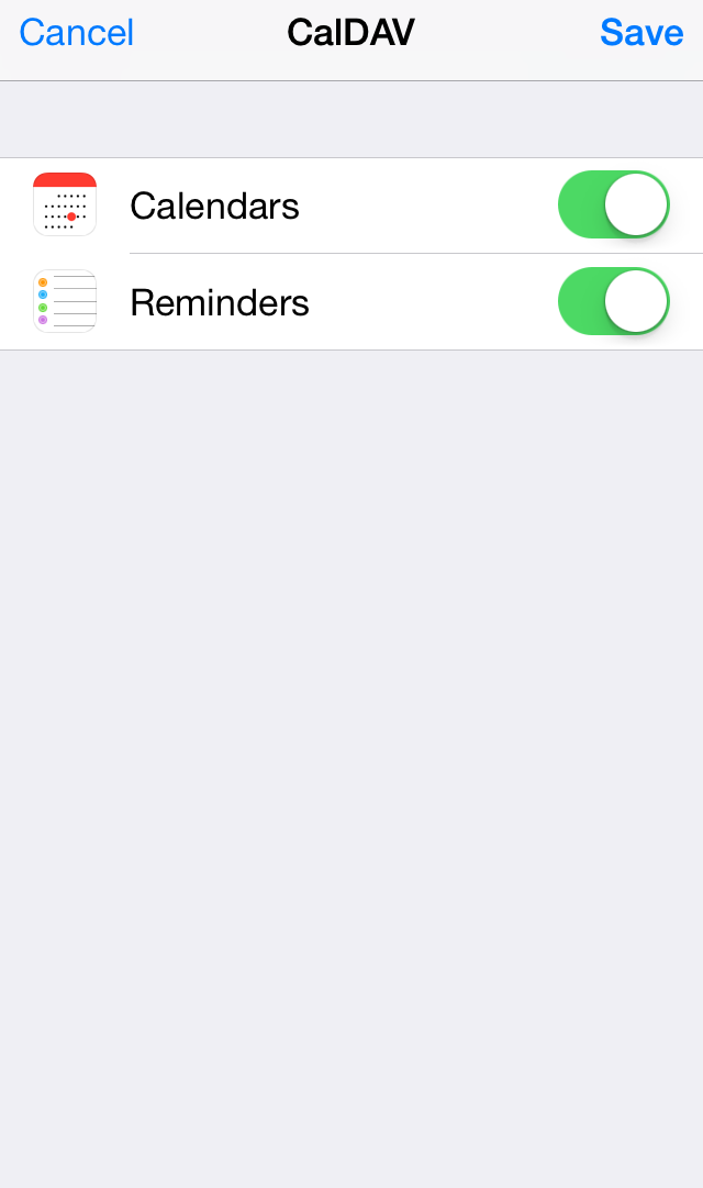 4. Choose what exactly you would like to use CalDAV with and click Save: