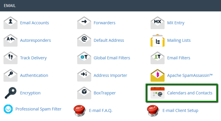 NOTE: You can find your CardDAV configuration settings within the Calendars and Contacts Client Configuration interface of your cPanel account.