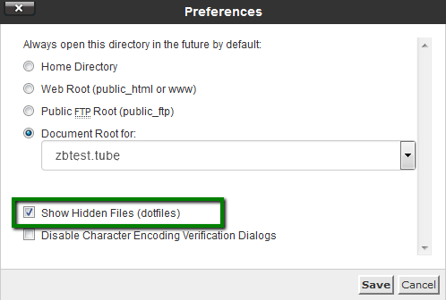 And enable Show Hidden Files (dotfiles) in the pop-up window: