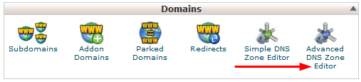 Log in to your cPanel, find the 'Domains' box and click on Advanced DNS Zone Editor.