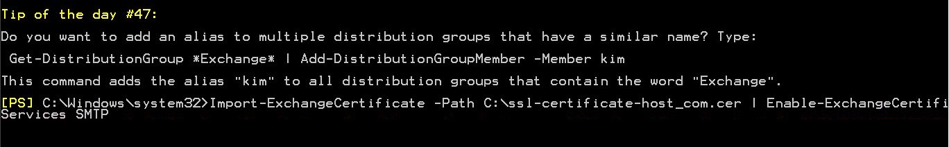 Import-ExchangeCertificate -Path C:www.example.com.cer | Enable-ExchangeCertificate -Services "SMTP, IMAP, POP, IIS"
