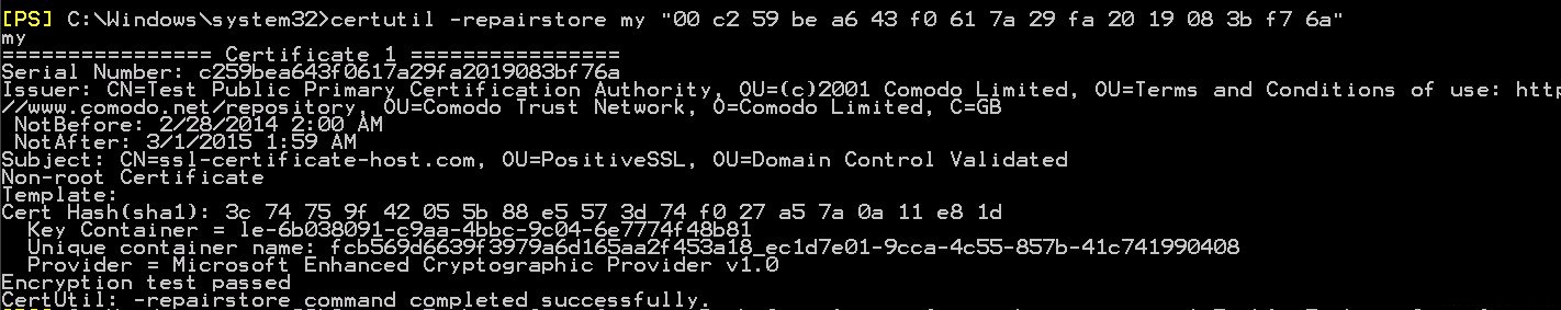 2. Type: certutil -repairstore my "YourSerialNumber"