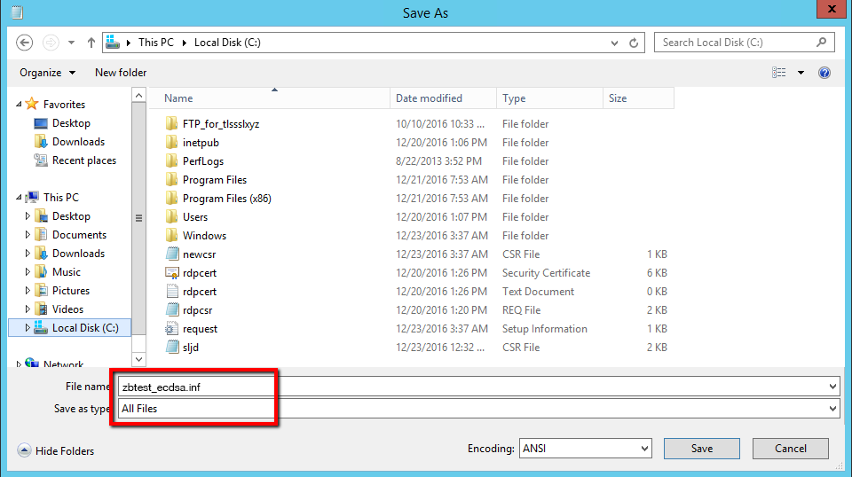 Before we begin working with 'certreq', we need to create a policy file from which the information required for the CSR will be pulled up. Create a new regular text file and open it. Then copy and paste the text from below into the file (select the piece of code either for RSA or ECDSA):