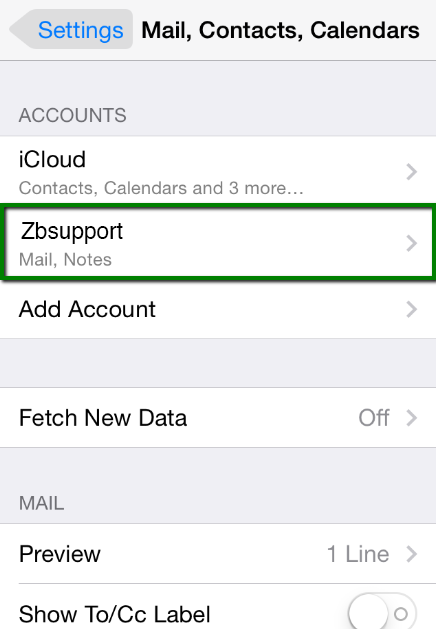 8. When the check is finished, you will be redirected to Mail, Contacts, Calendars screen. Choose your newly created account there: