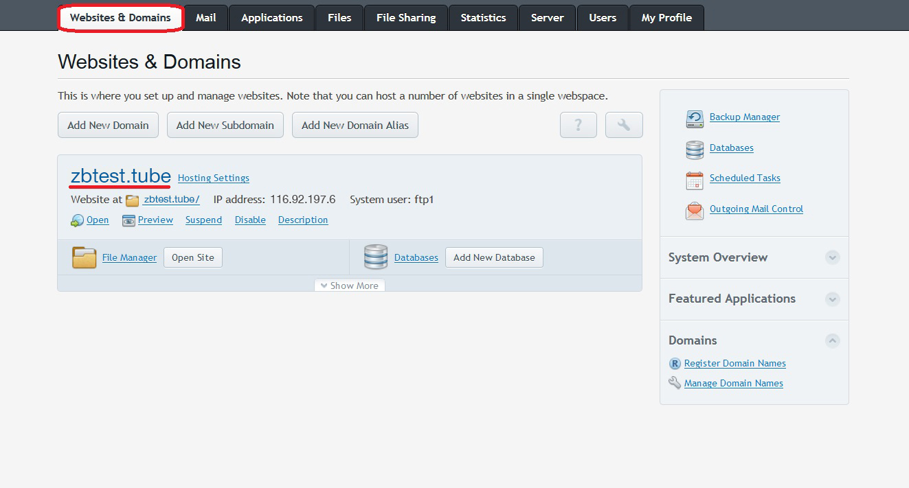 Go to the Websites & Domains tab and select the domain you want to secure.