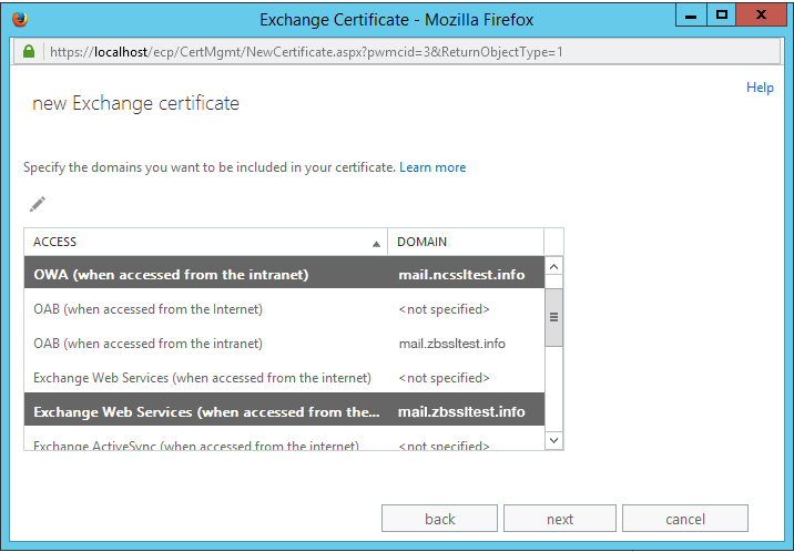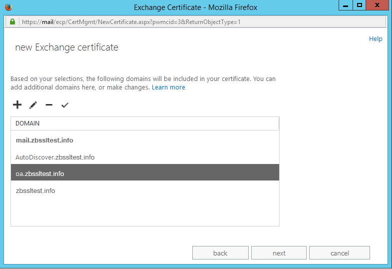 In this example, we are generating the CSR on the server called MAIL for the domains mail.zbtest.info, zbtest.info and autodiscover.zbtest.info.