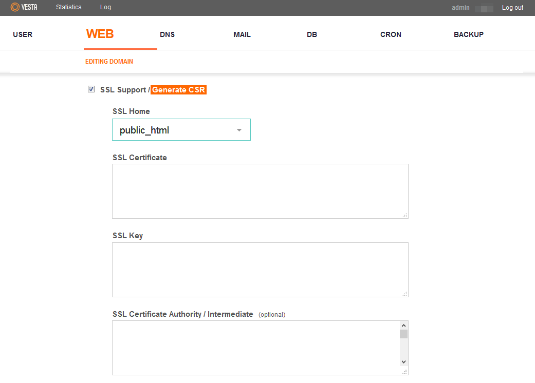 In order to generate a CSR code in your Vesta Control Panel, the following steps should be done: