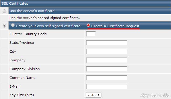 - Select the option 'Create a Certificate Request', enter the required information in all fields, and click 'Save'.