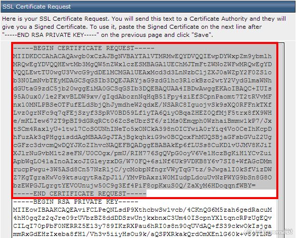 - Copy the information that appears in the text box. The Certificate Request portion will be used for the Certificate Activation process. If RSA Private key is also available, make sure that you have copied and backed it up because it will not be saved anywhere and will be needed during the installation.