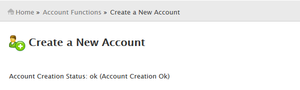 Once ready, click on Create. If the account creation has been successful, you will see this message: