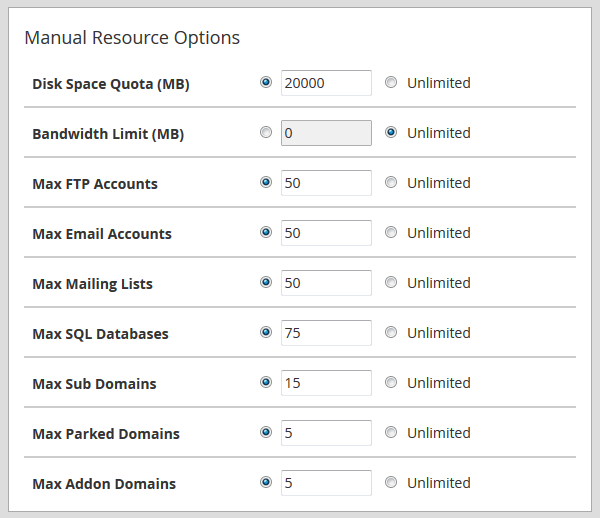 When creating a new cPanel account, you will need to configure the following set of account features: