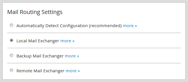 Remote Mail Exchanger: this option will configure the server not to accept mail locally and send mail to the lowest MX record, select it if you wish to use a third-party email service