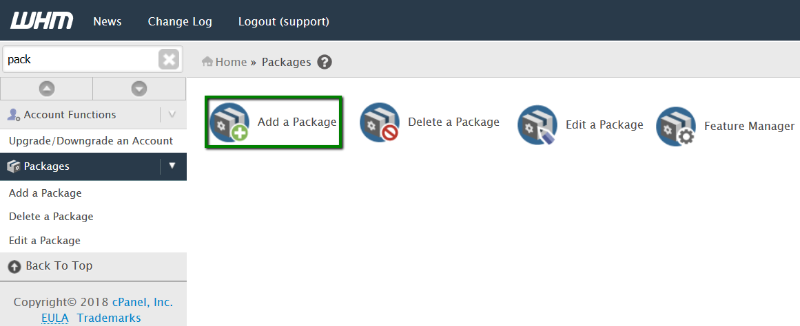 To speed up account creation, we recommend adding Packages, a specific set of features for the default use during cPanel account creation: