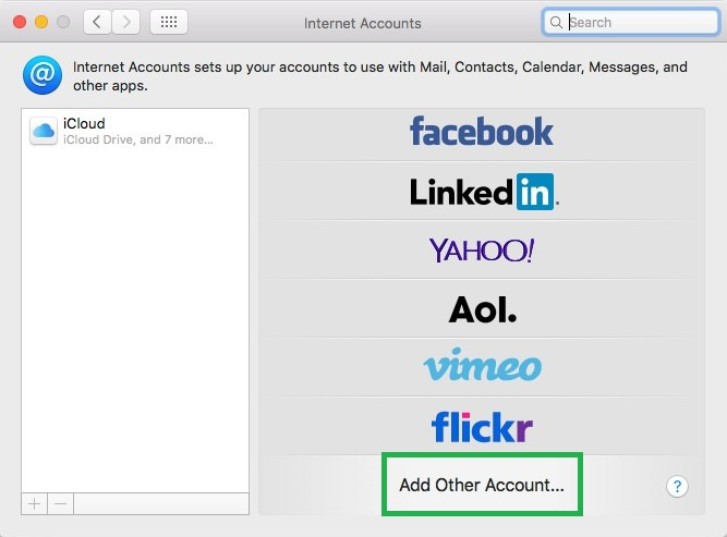 1. Click Launchpad and then System Preferences > Internet Accounts: